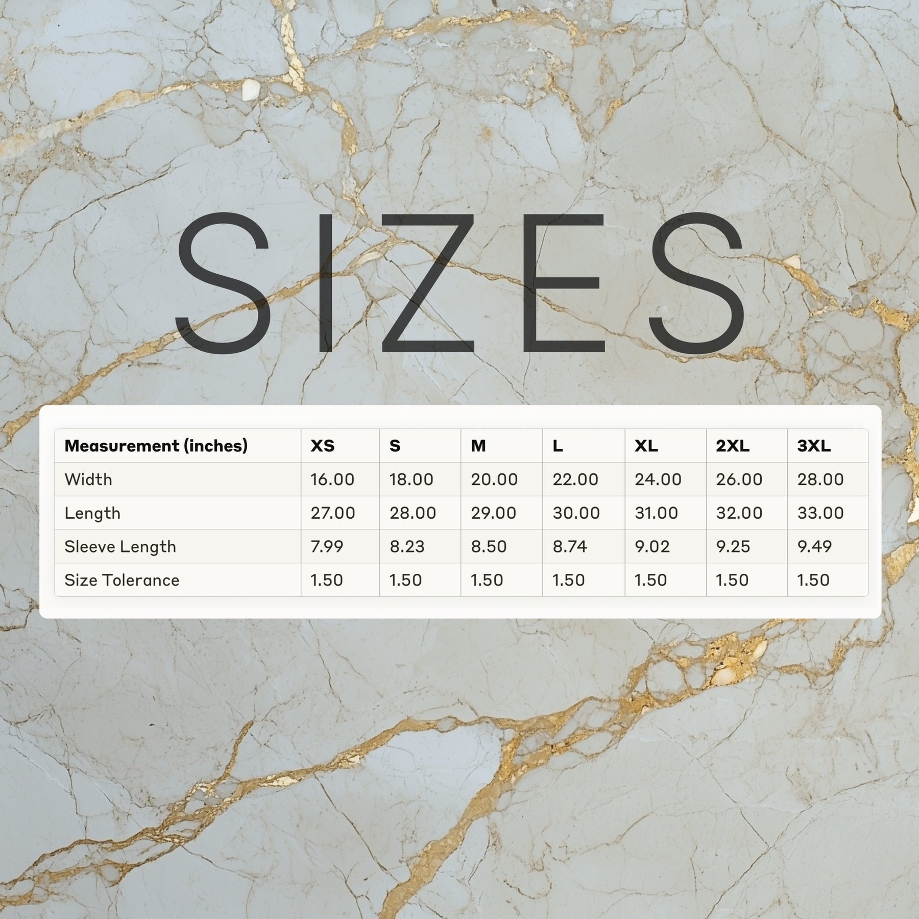Sleeve length, in 7.99 8.23 8.50 8.74 9.02 9.25