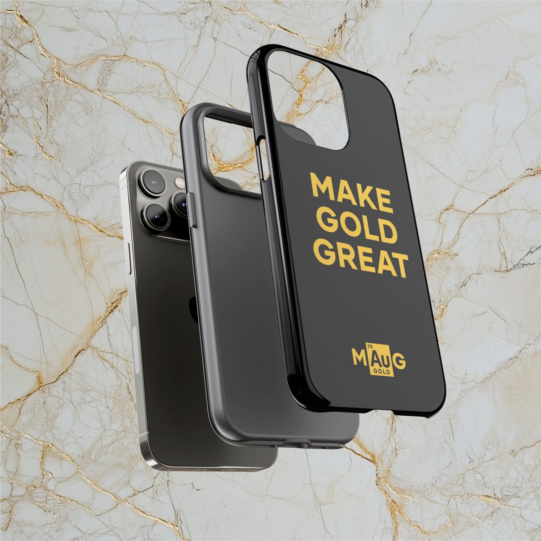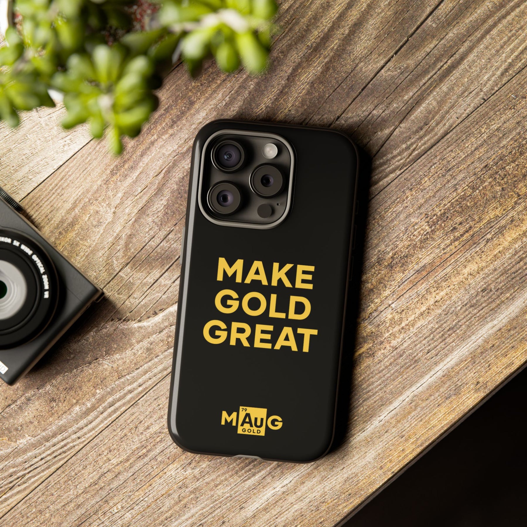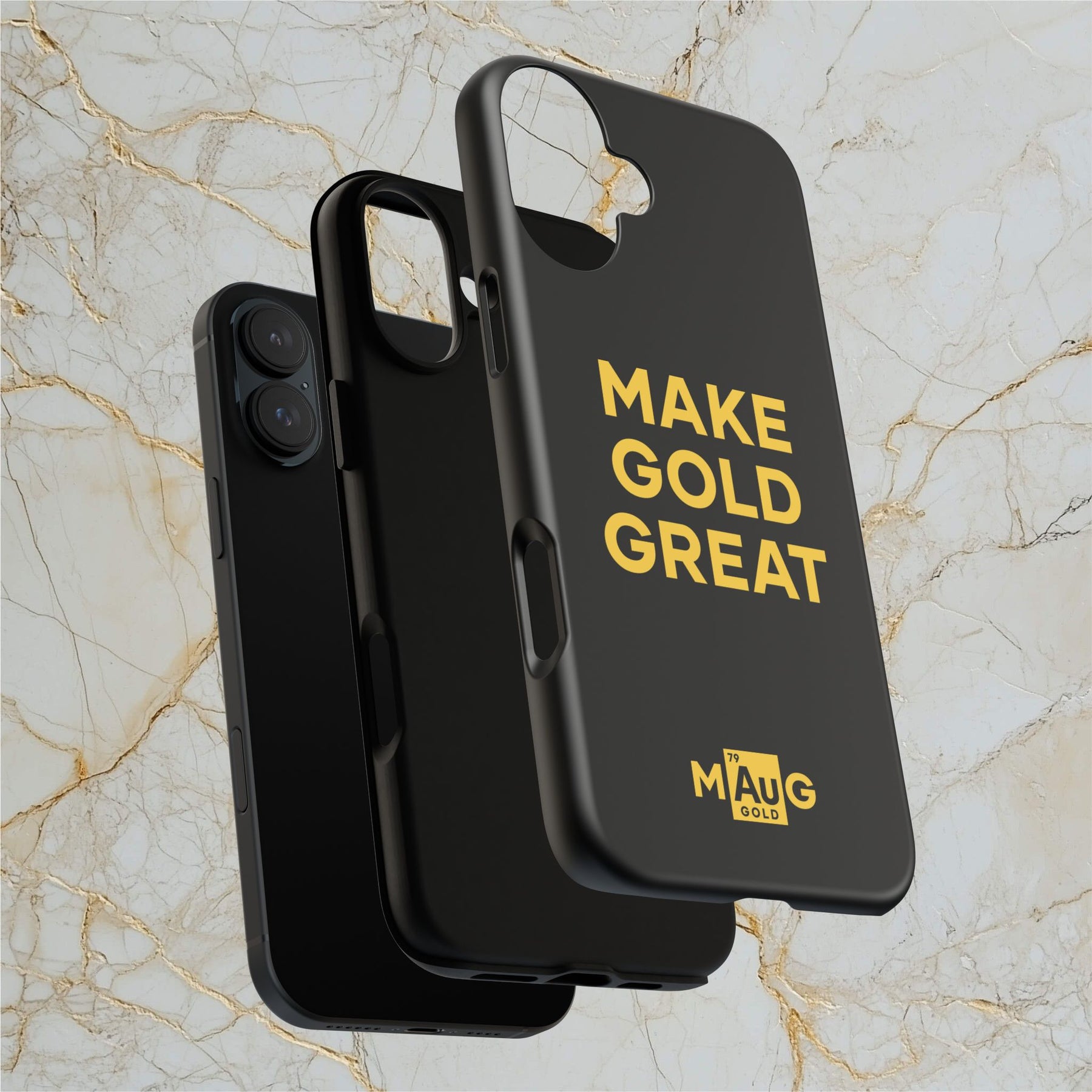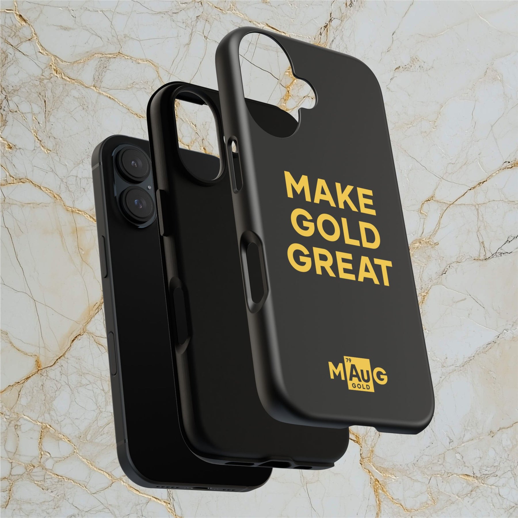 A sleek, tough Make Gold Great – M[Au]G – phone case.