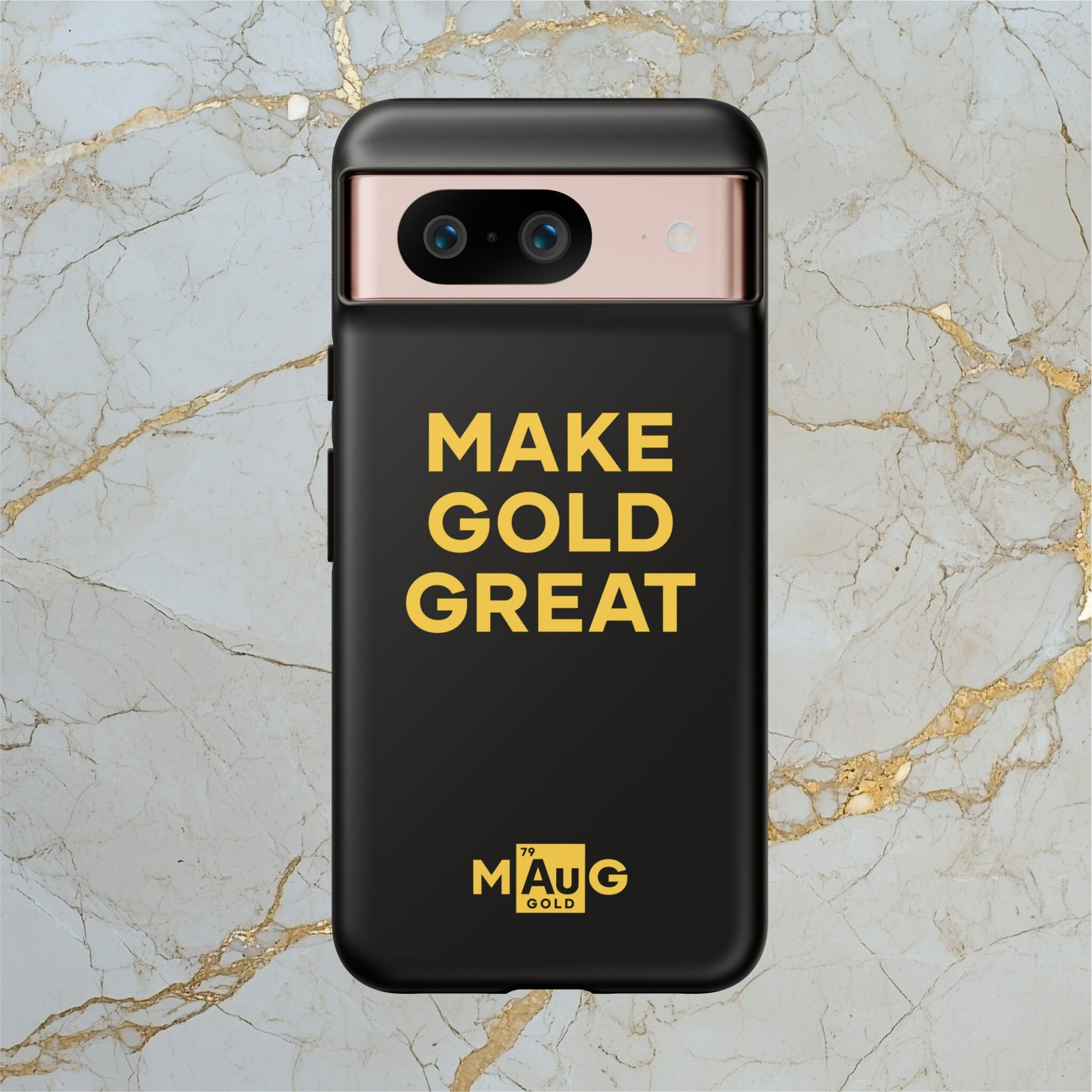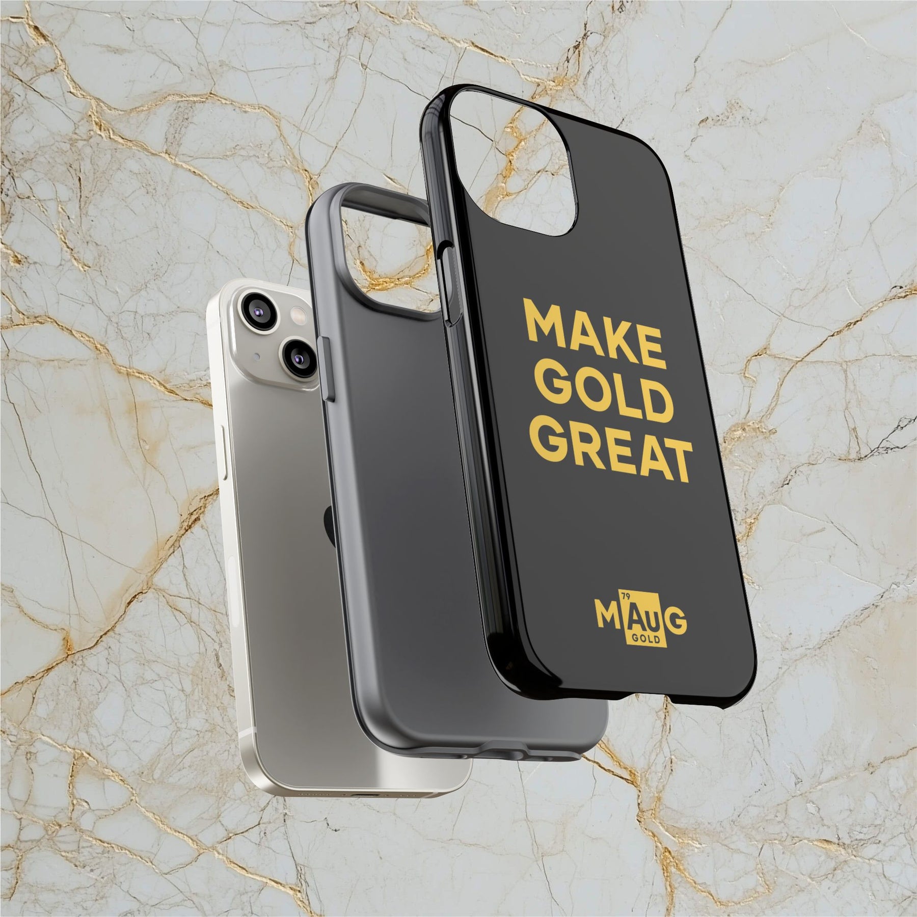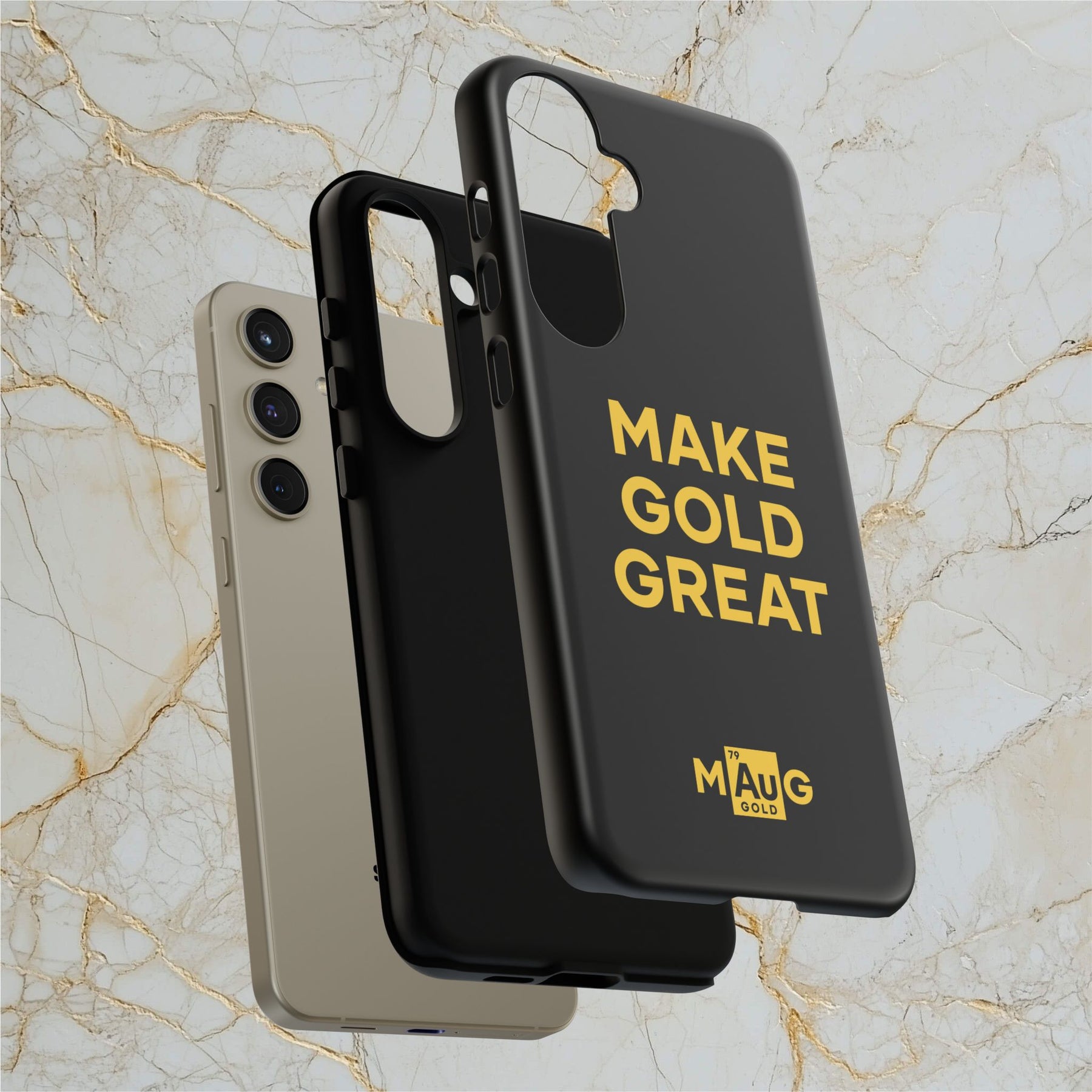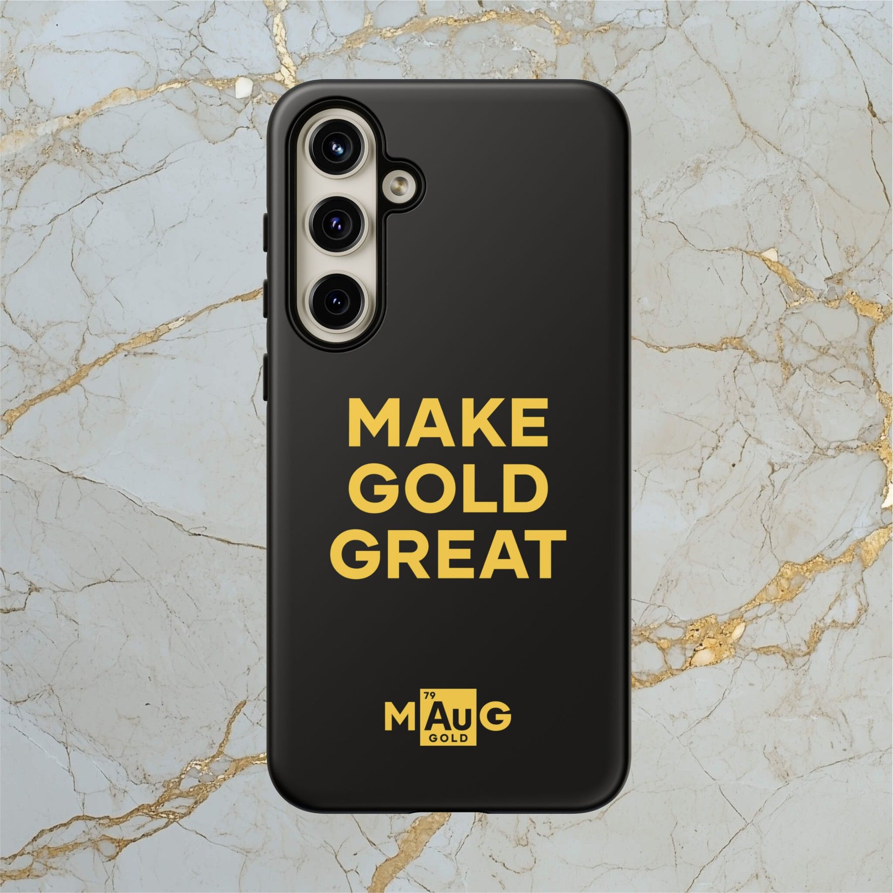 A sleek, tough Make Gold Great – M[Au]G – phone case.